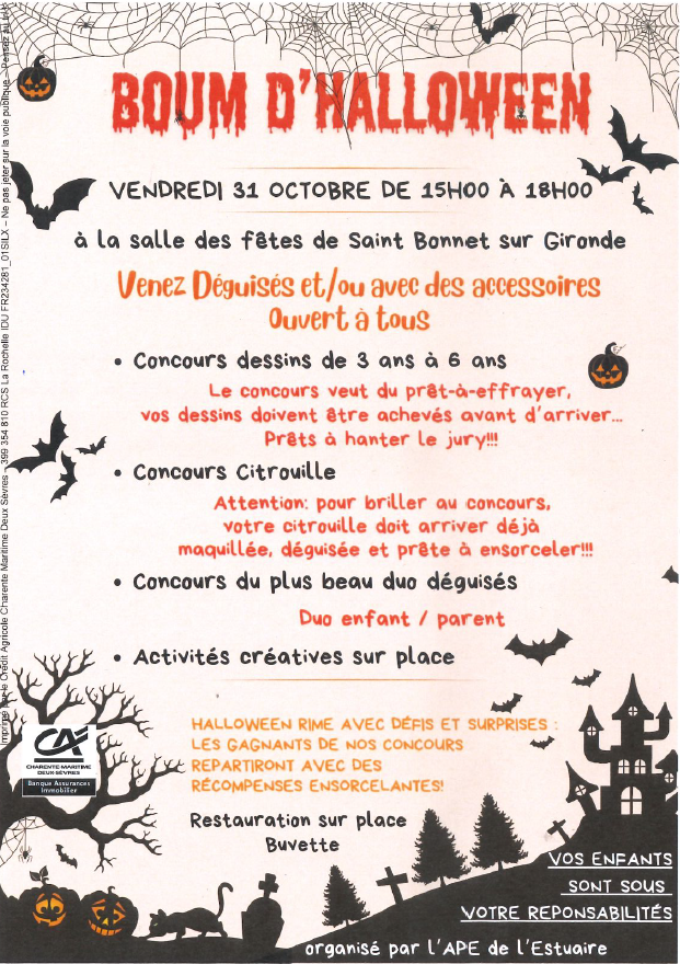 Boum d’Halloween + Ajouter à mon Agenda Google + iCal / Outlook export 00 jours 00 heures 00 minutes 00 secondes Date 31 Oct 2025 Heure 15:00 - 18:00 Partagez cet événement octobre 2025 Oct 31 2025 Boum d’Halloween novembre 2025 Nov 15 2025 Soirée choucroute karaoké Pas d'événement actuellement programmé.