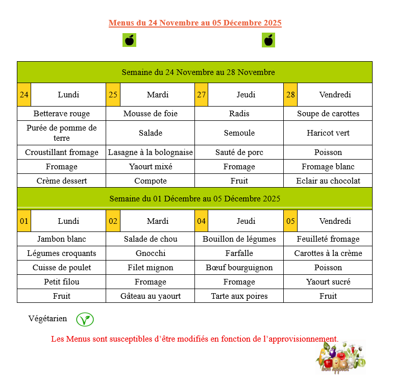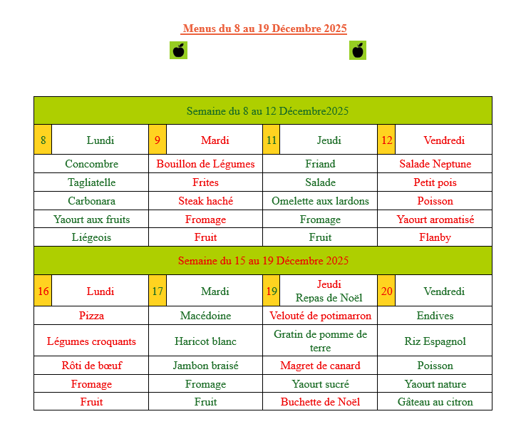Les élèves sont pris en charge par la cuisinière et l’agent responsable de l’encadrement des élèves de 12h à 13h30.
